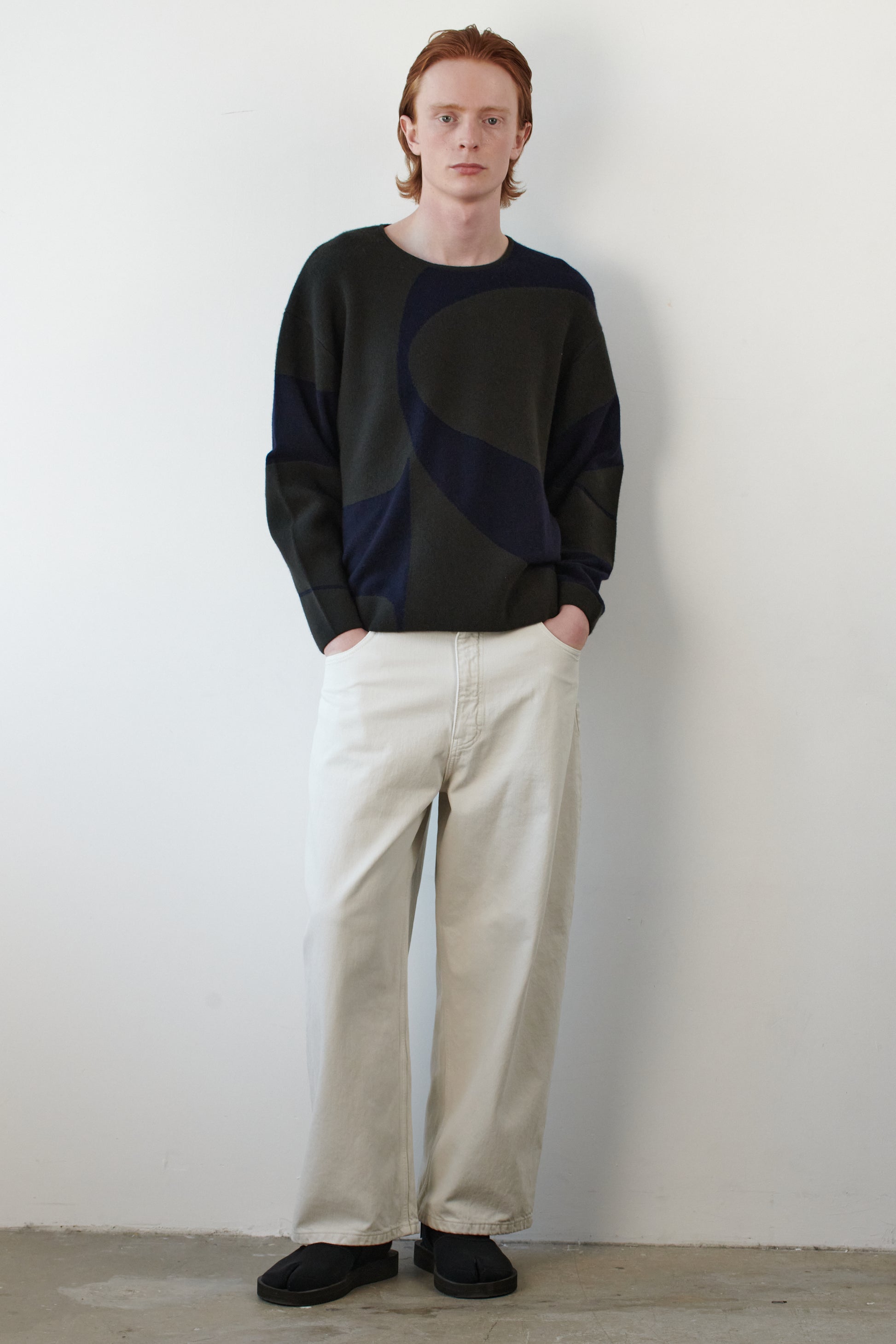 embrace cozy vibes in our boxy silhouette knitted jacquard print sweater. a perfect blend of comfort and style for your everyday wardrobe.