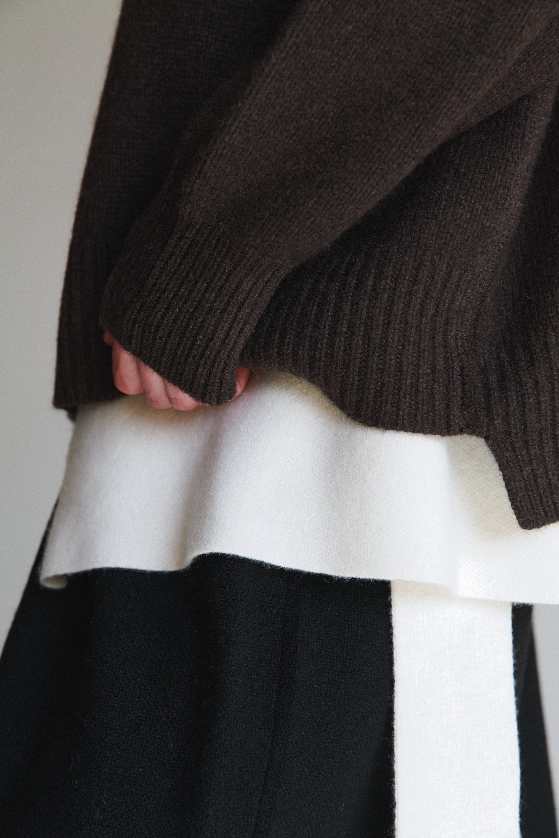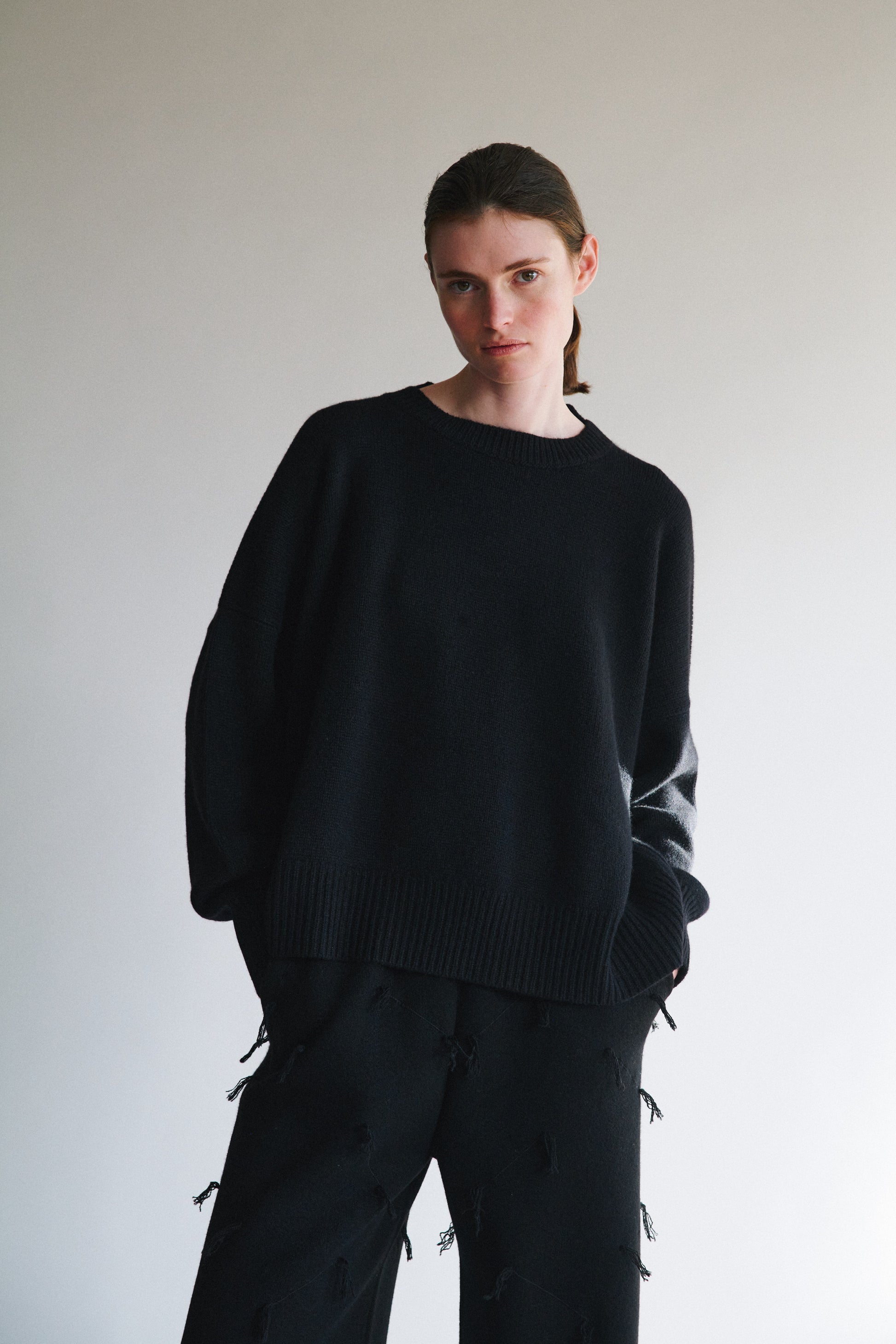 A best-selling style with stepped trim detailing and a generous oversized fit. Knitted in a chunky jersey stitch, this item comes in one size, is versatile, and can comfortably accommodate sizes ranging from small to large.