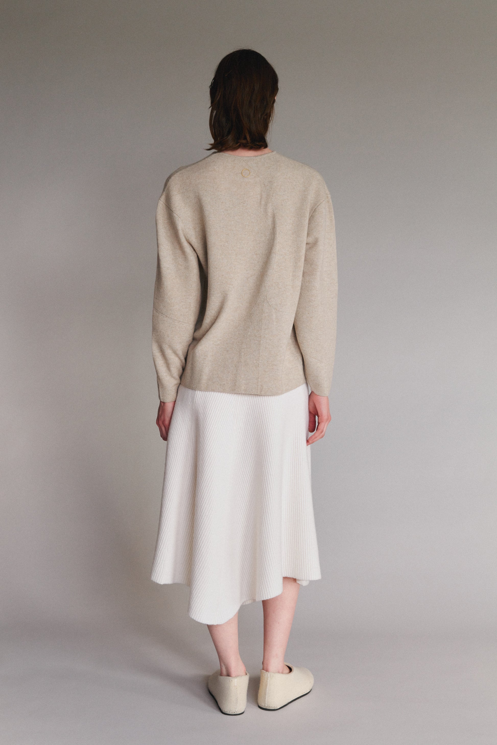 An oversized fit sweater with thin and thick knit formed by an abstracted pattern of our logo letters. Features a boxy silhouette and clean trims for a more elevated version of a sweater that can be dressed up or down.
