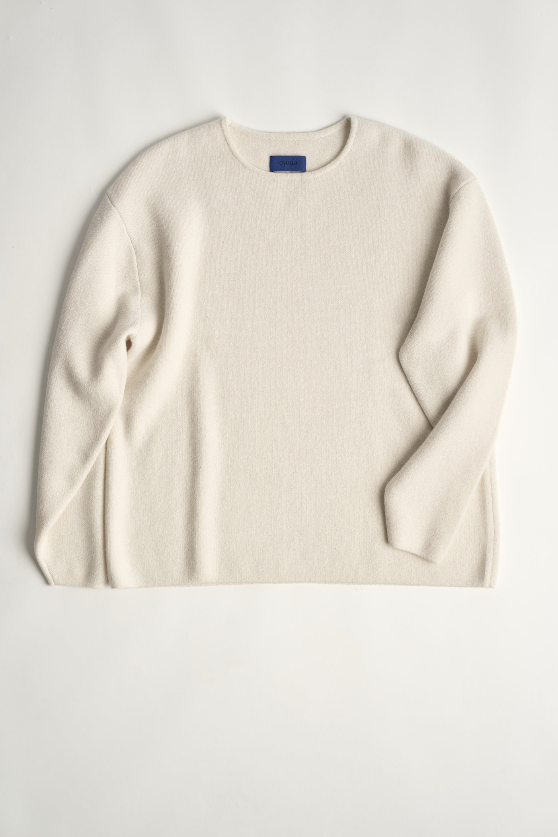 Definitely one of our favourite pieces in our core collection. An oversized fit sweater with drop shoulders and sculpted, rounded sleeves, featuring modern clean trims and knitted in a structured jacquard stitch.