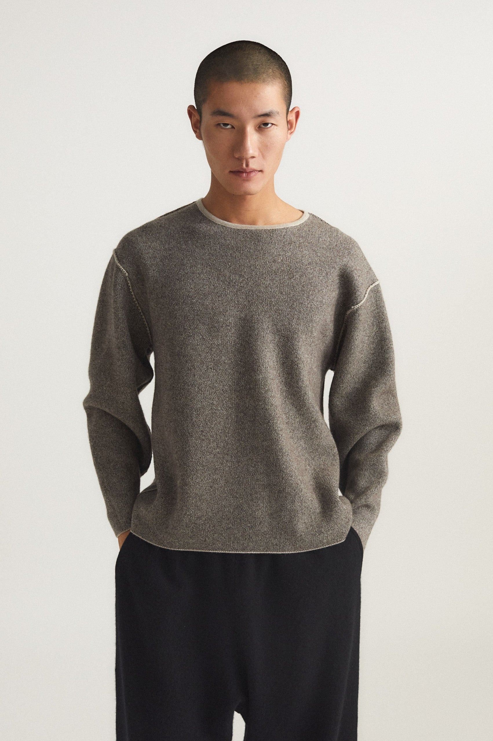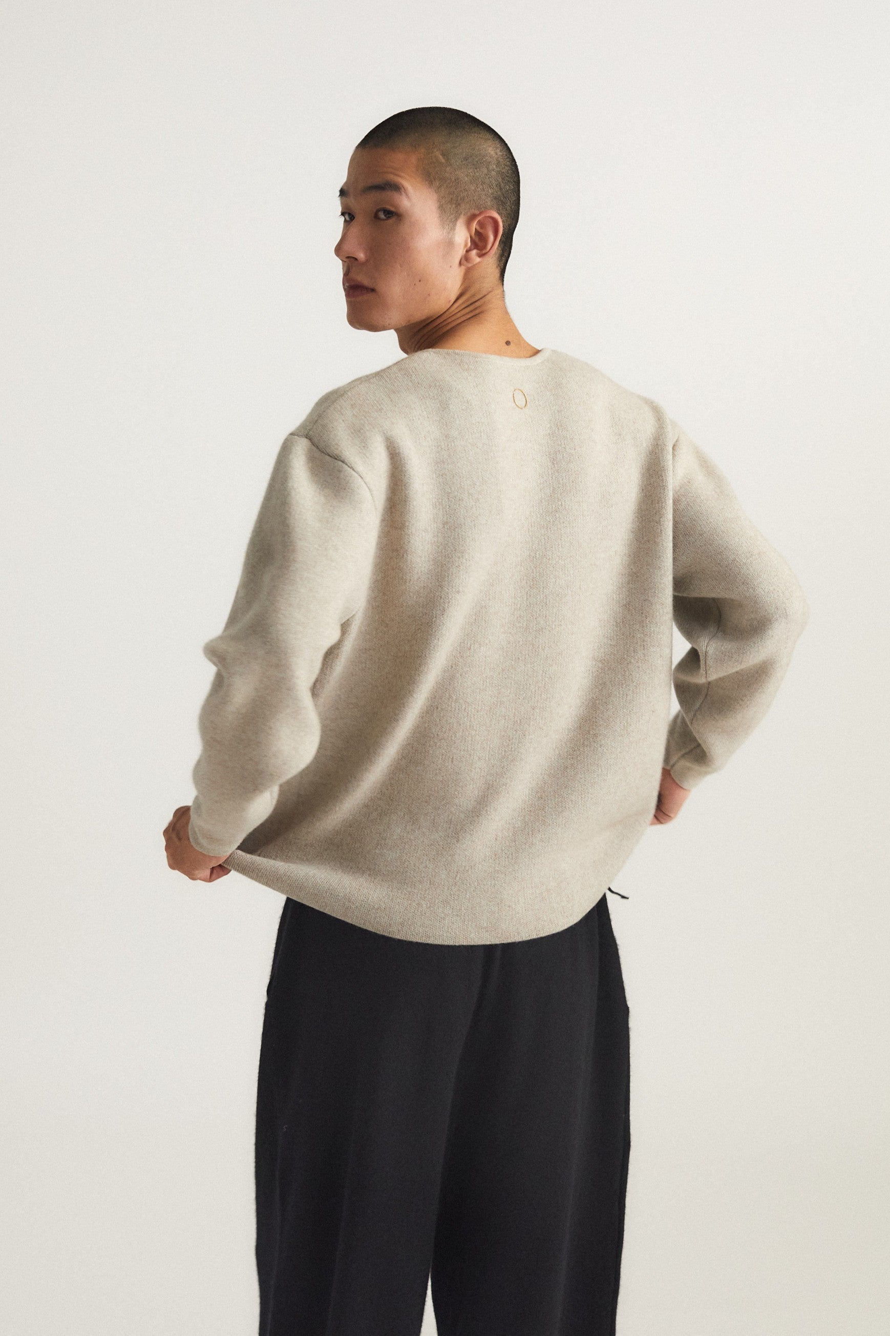 Definitely one of our favourite pieces in our core collection. An oversized fit sweater with drop shoulders and sculpted, rounded sleeves, featuring modern clean trims and knitted in a structured jacquard stitch.