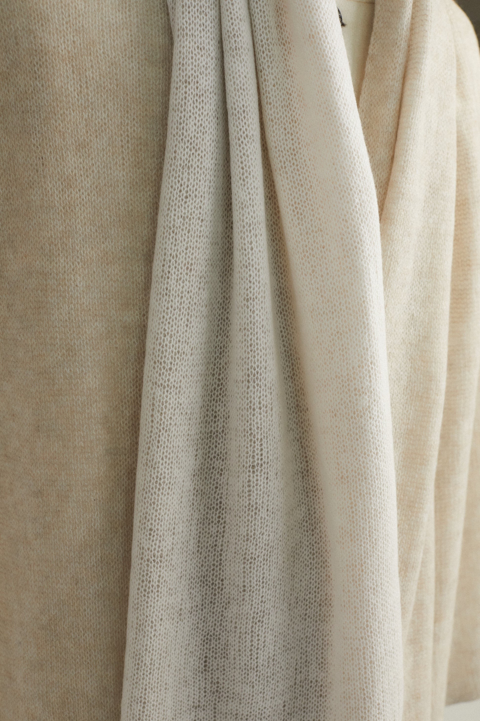 A versatile double-face shawl offering two colour options for effortless styling with various outfits. Knitted with an airy, soft open-knit structure that creates super-light yet voluminous texture.