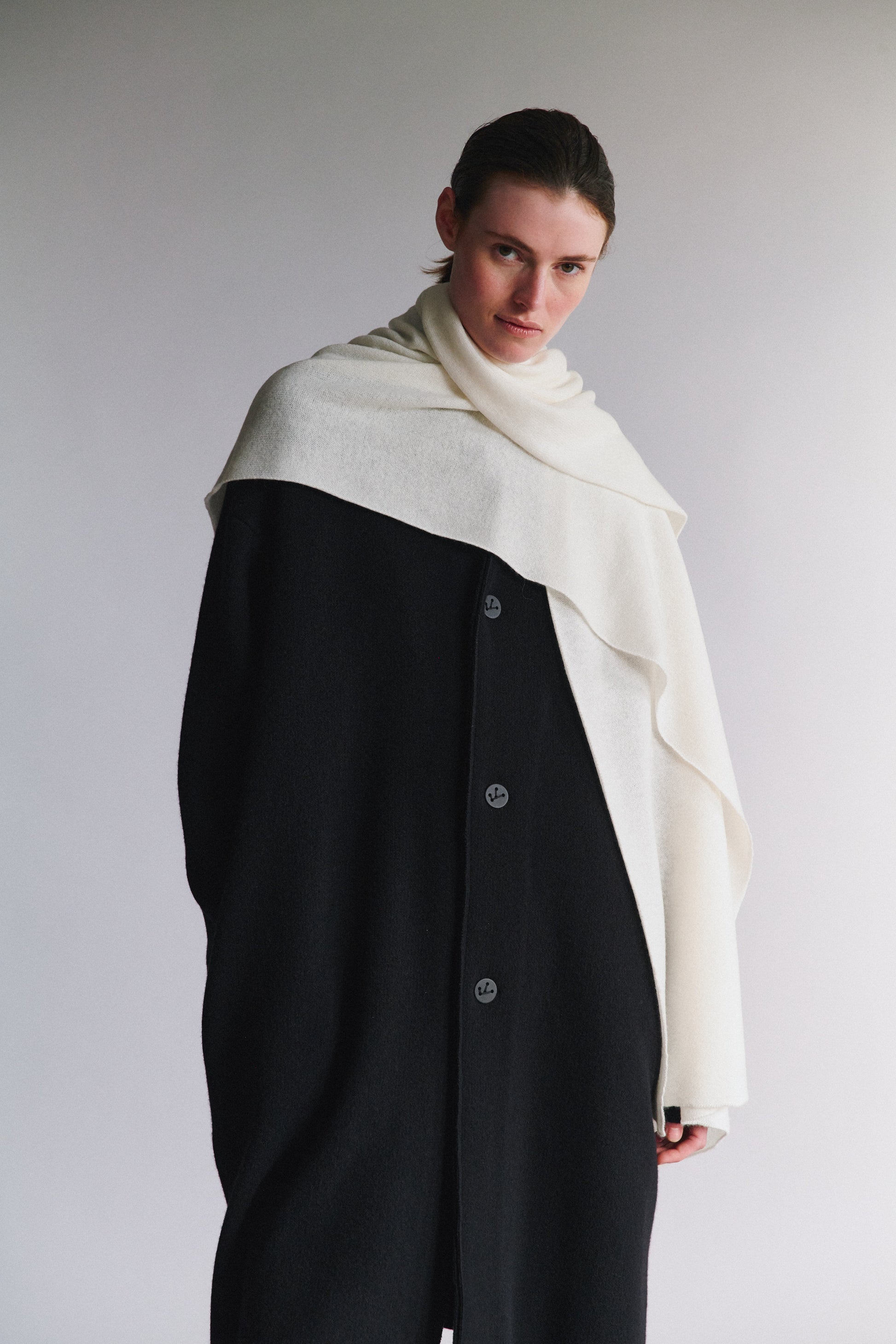Pure simplicity in cashmere. this felted shawl is extra soft due to its felted nature, and contains more cashmere in it, condensed. A warming and stylish piece for years to come.