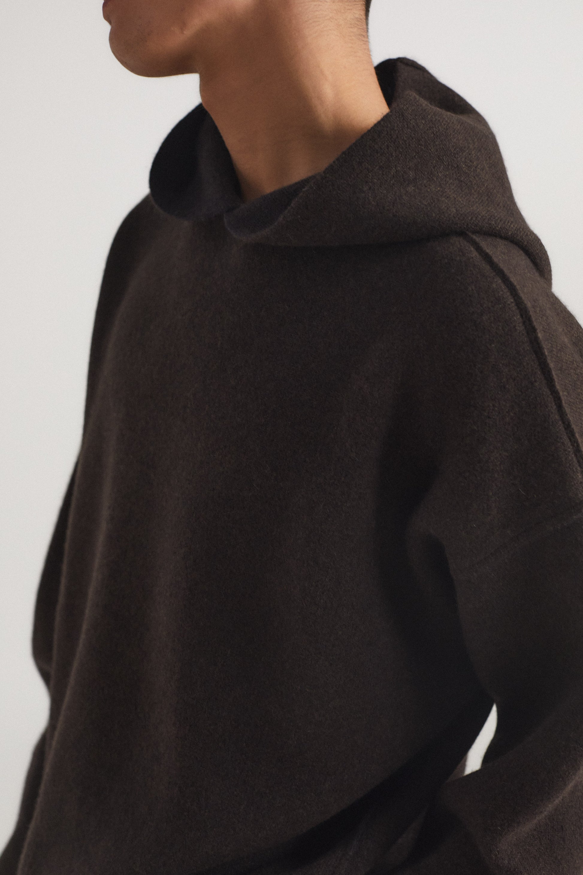 This is the best cashmere hoodie we have ever come across. The quietly modern and clean look of this hoodie is enhanced with laser-sharp seam detailing. Fully reversible. This hoodie works very well on different-shaped bodies. It feels like a soft sculpted hug.