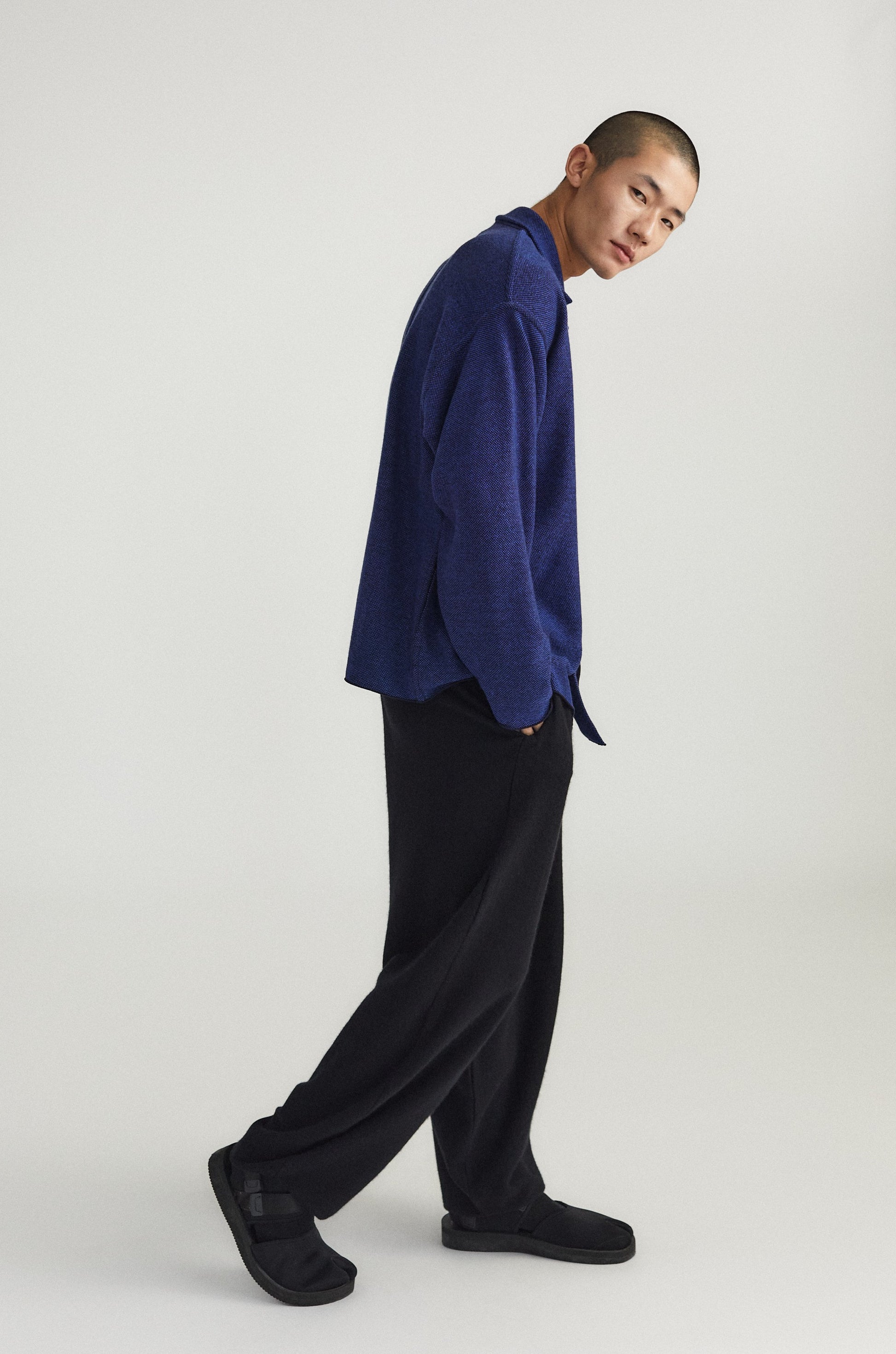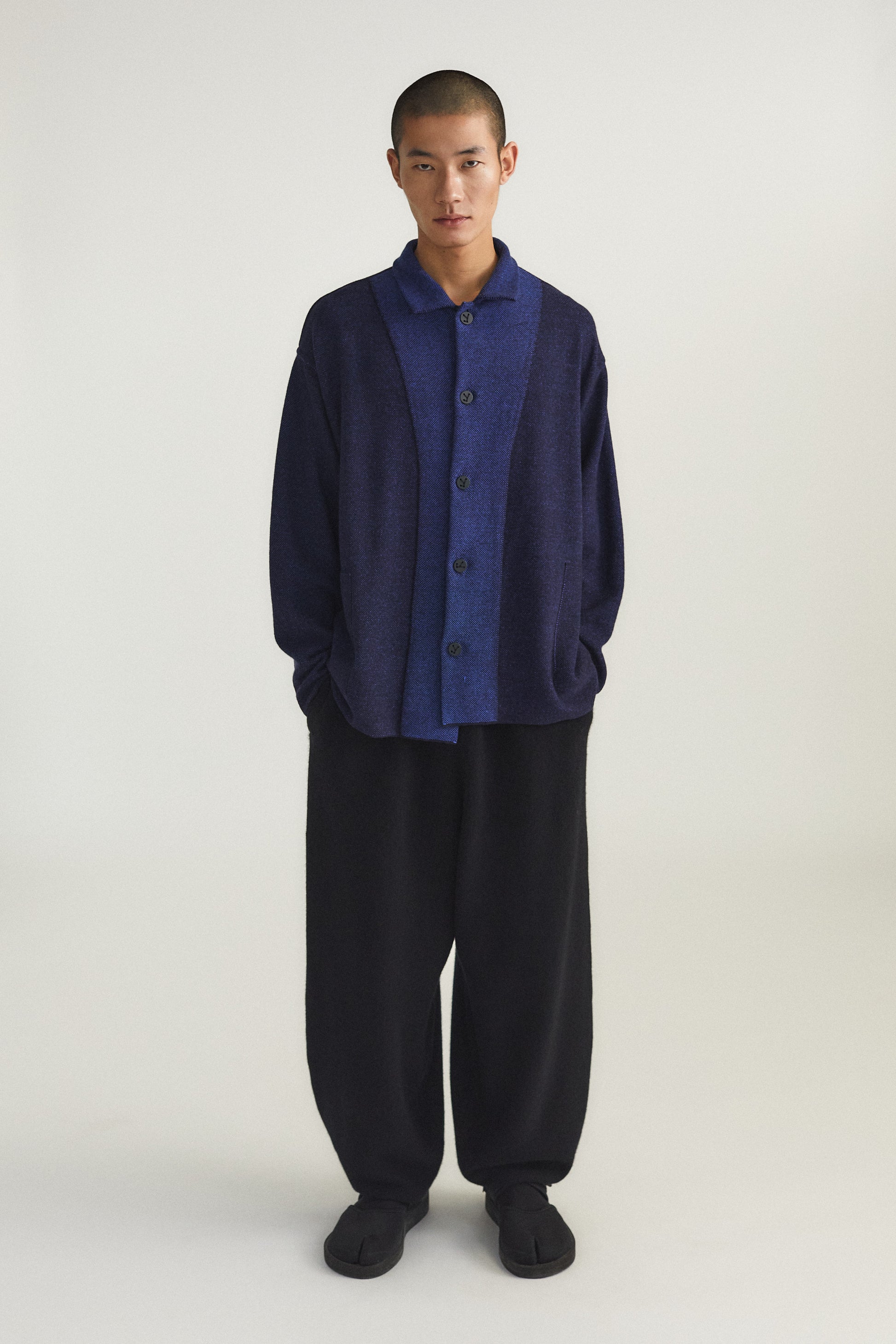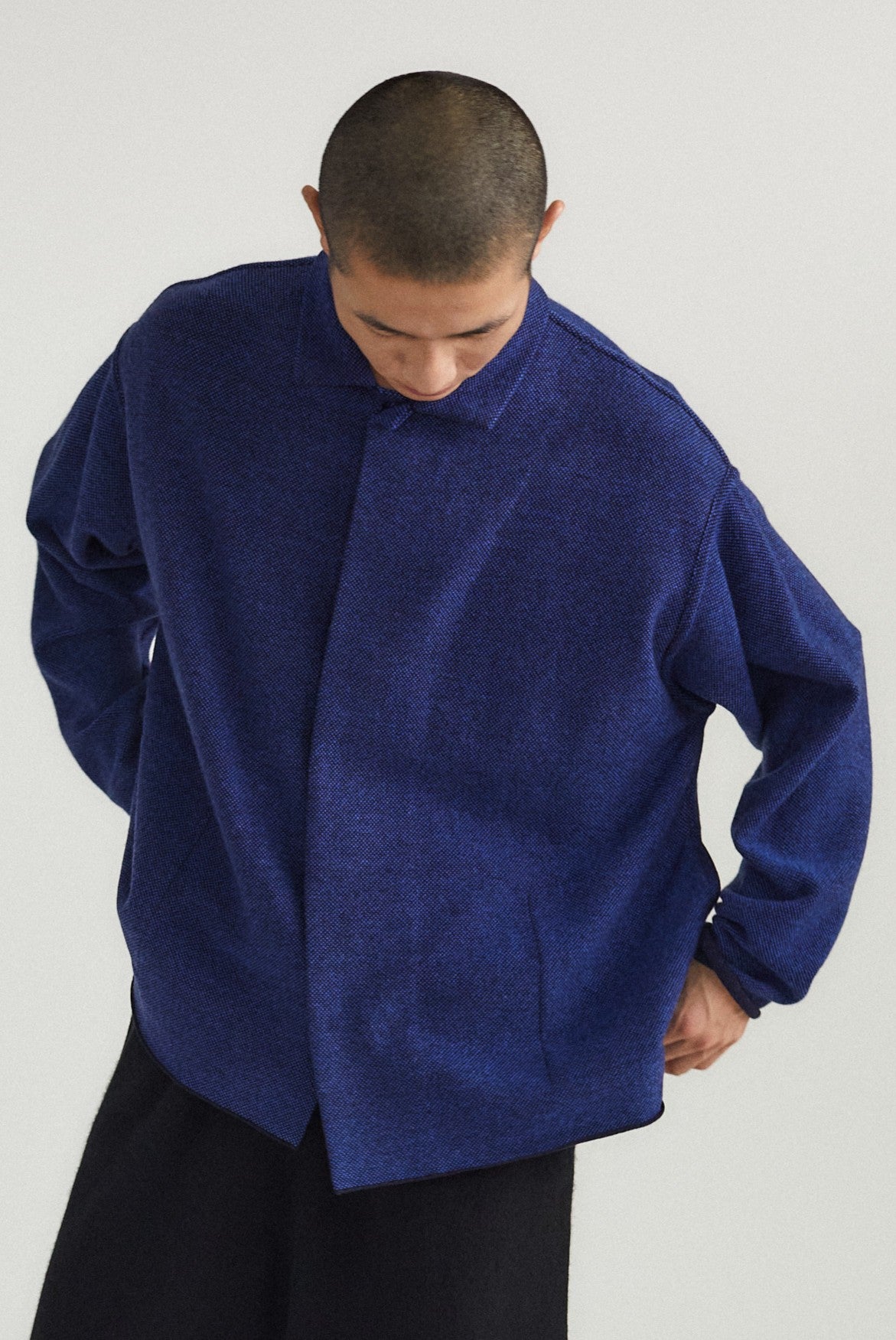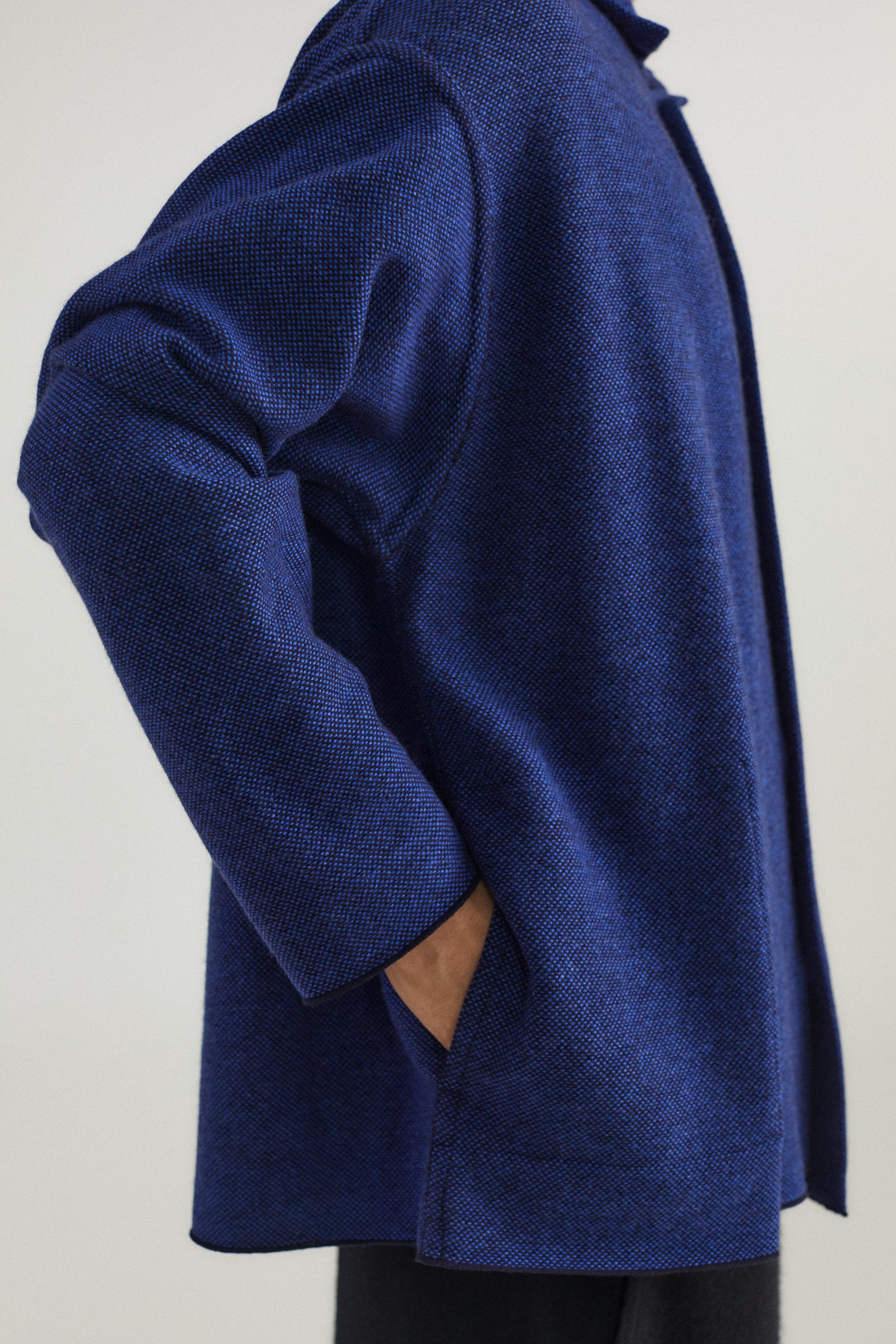 Reversible lightweight knitted boxy jacket, crafted from 100% cashmere in a luxurious inlay weave knit for light softness and warmth. Featuring a relaxed silhouette, this timeless piece can be worn with front facing out as shown on Grace, or on the other side with clean front lines.