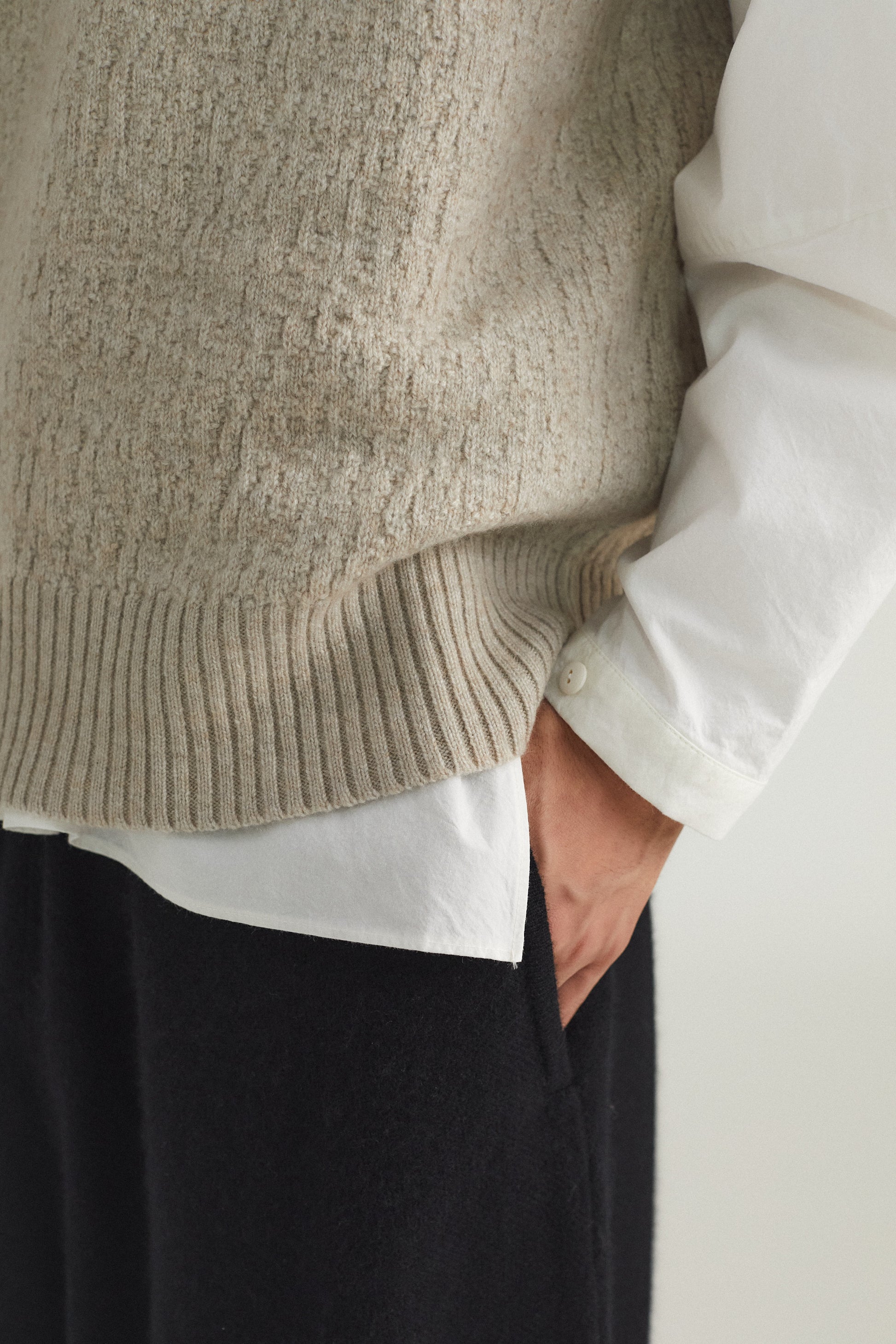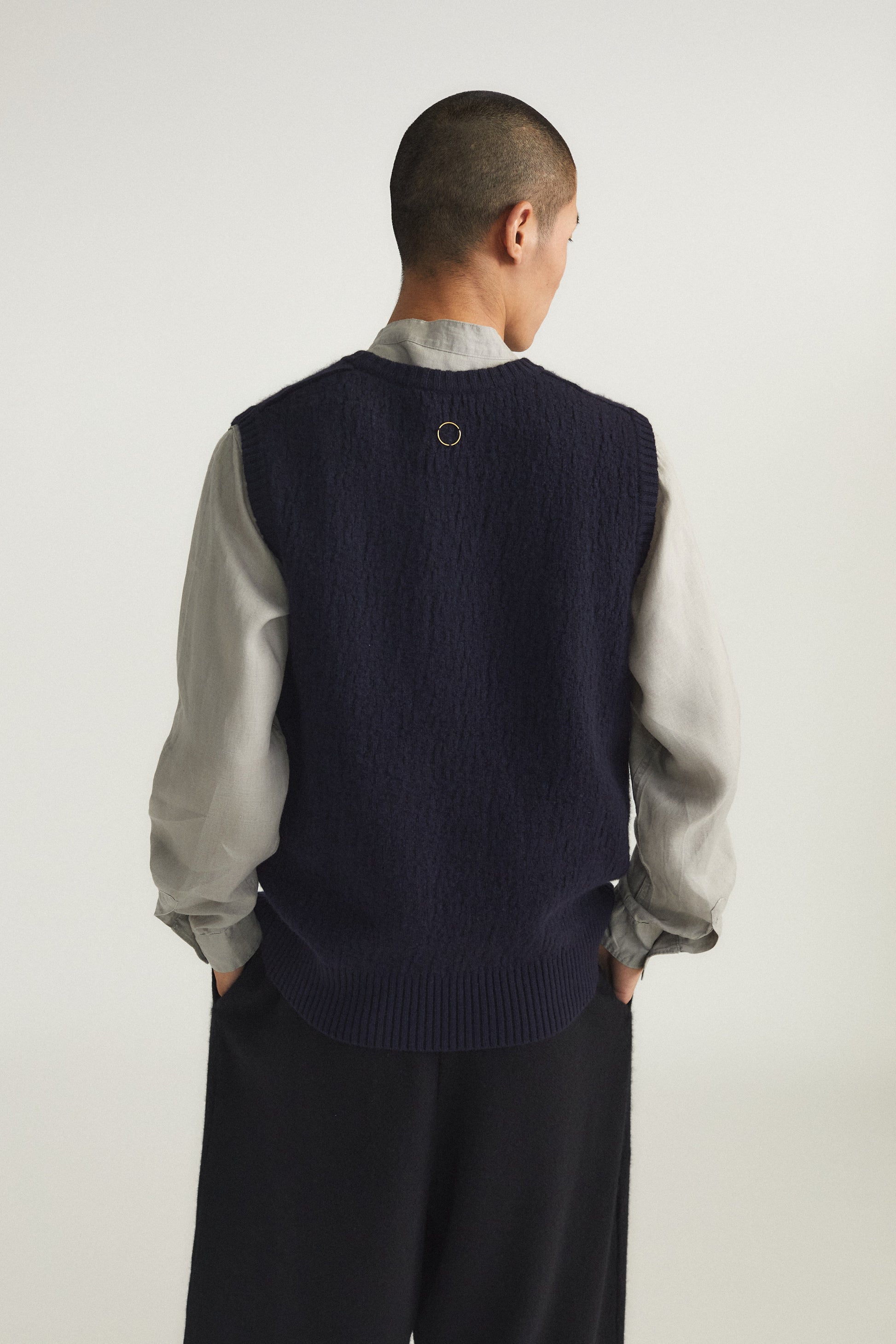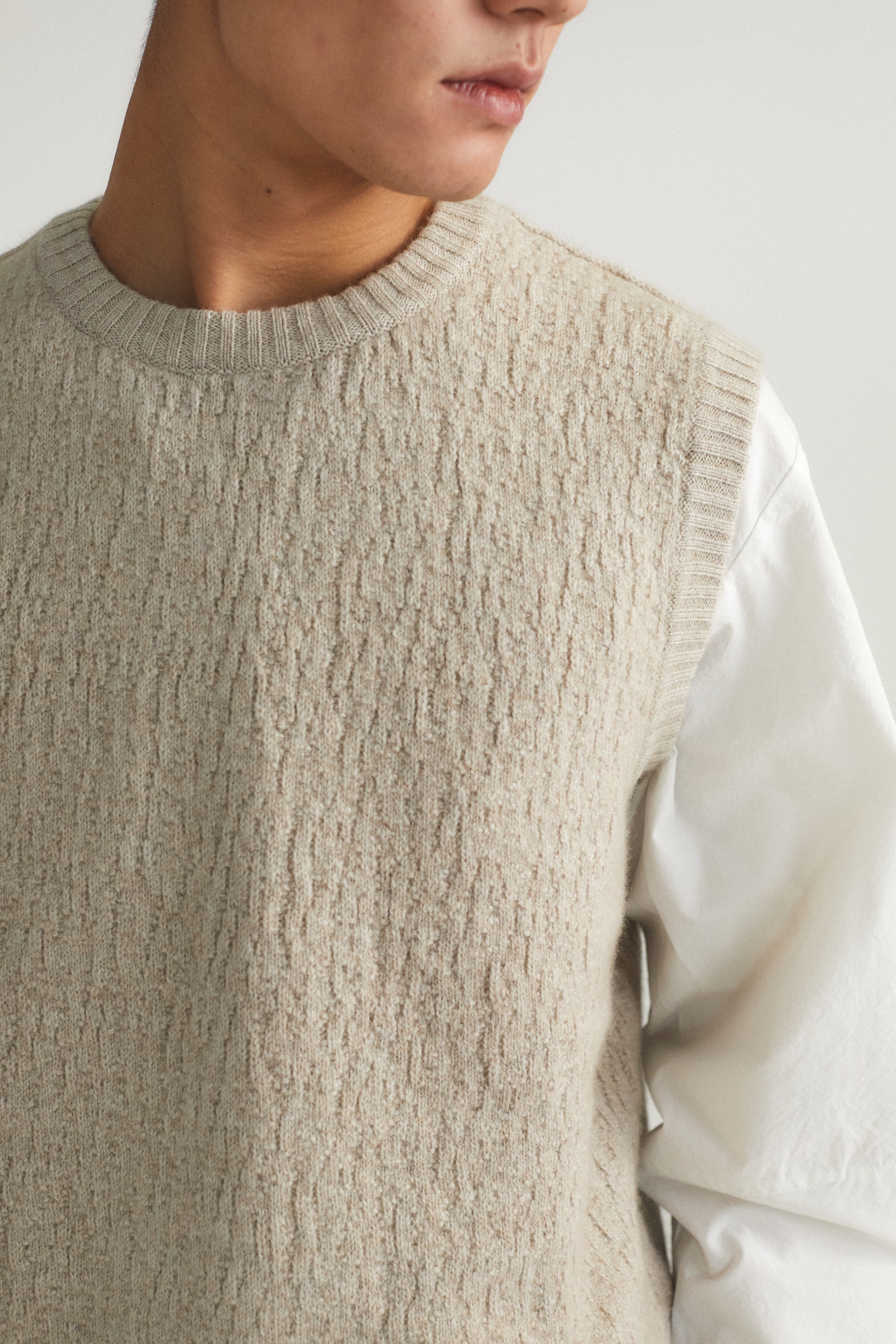 A perfect layering piece with a textured knit, this vest features round rib-knit trims and relaxed-fit armholes. Can be styled with a shirt or long-sleeve top.
